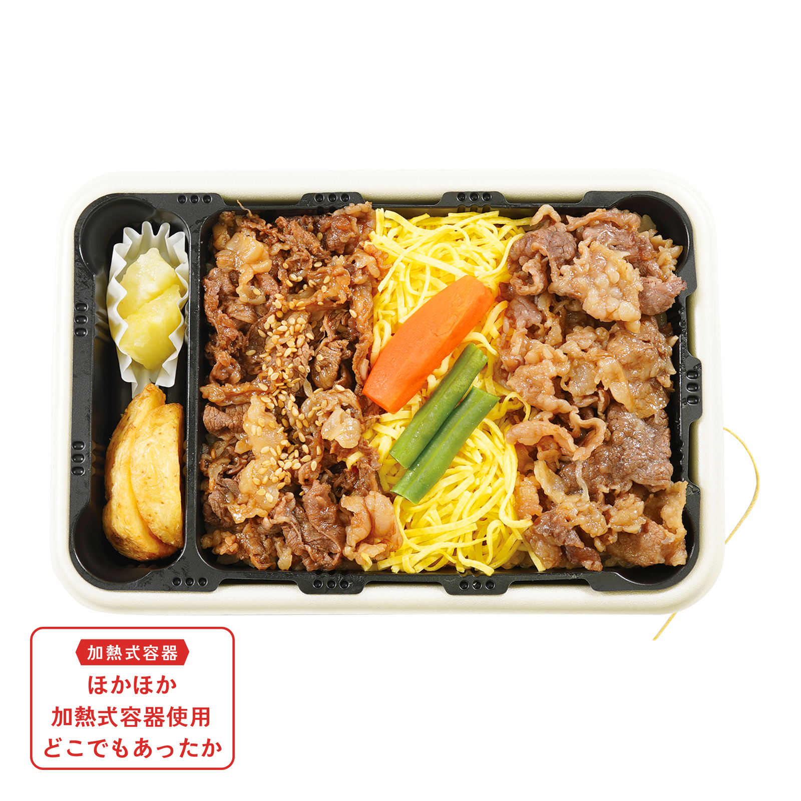 味付けご飯、近江牛(すき焼き、焼肉)、錦糸卵、いんげん煮、人参煮、フライドポテト、パインアップル