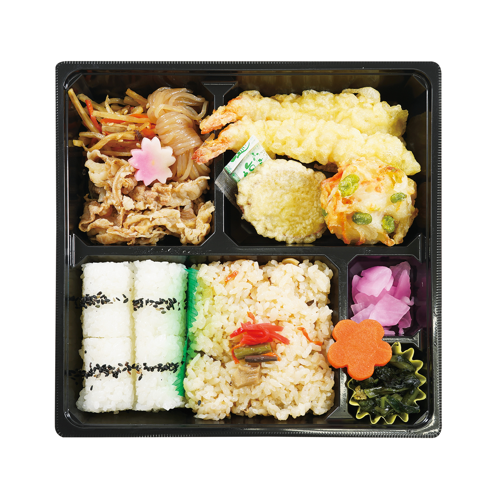 牛すきと天ぷらのダブルメインが嬉しい ボリュームのある和風弁当です。