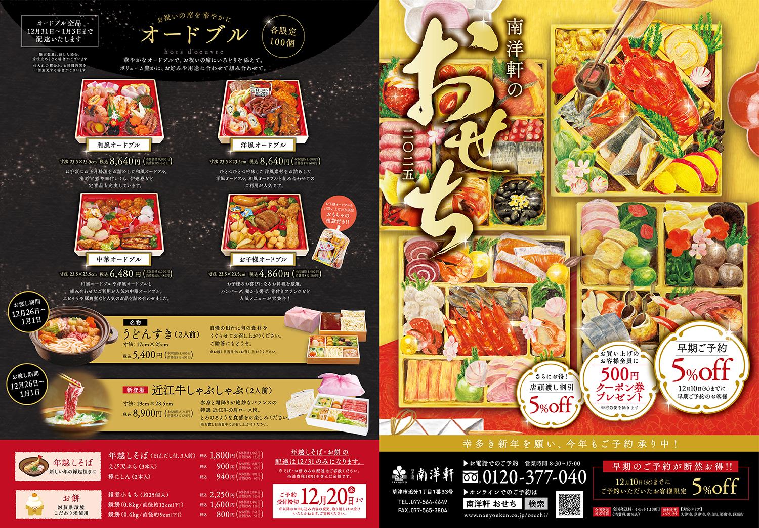 ホームお知らせ> <南洋軒のおせち 二〇二五> ご予約受付を終了しました!!