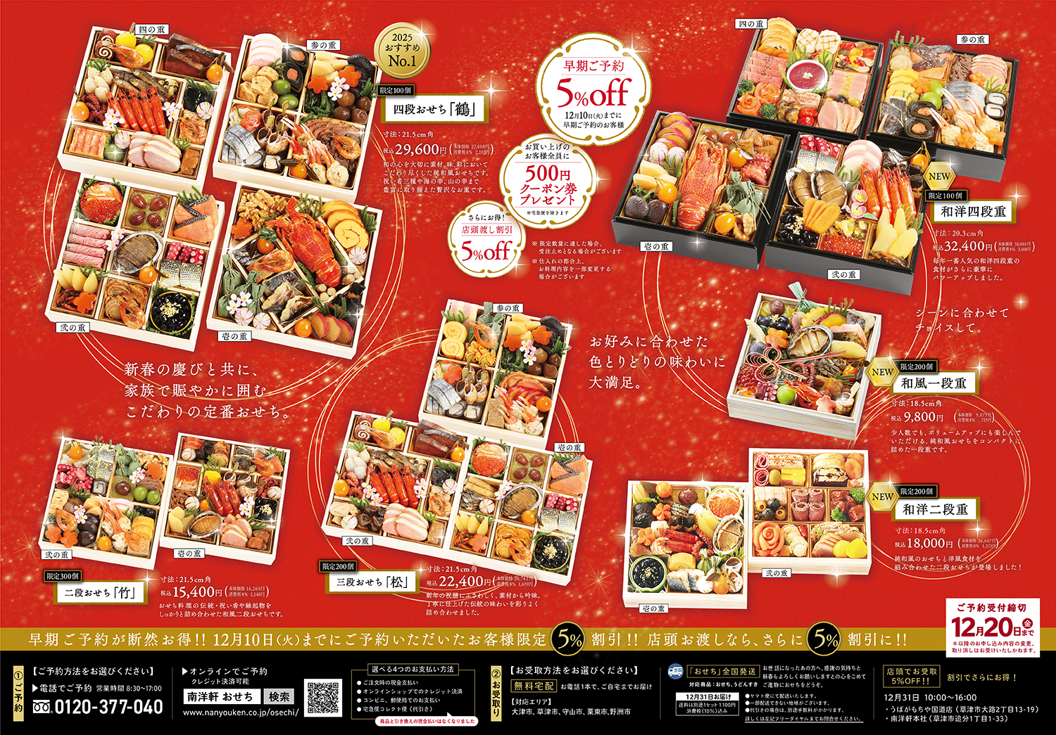 <南洋軒のおせち 二〇二五> ご予約受付を終了しました!!